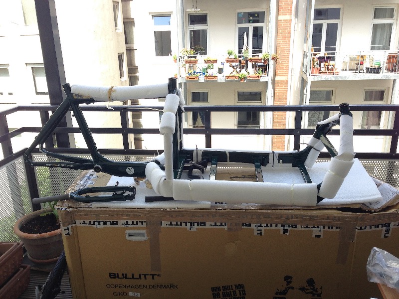 DICKY Technical specification: Frame: Bullitt alu frame Wheels: Alu 36 holes, front 20" XT disc hub, aft 26" Alfine 8 internal Gear hub; Sprockets: Shimano 16 Tires: Schwalbe Marathon 47 Crankset: Shimano Alfine Black Pedals: Bottom bracket: Shimano Alfine Brakes: Shimano Disc Alfine black, Disc 160mm aft, 180mm front Brake levers: Shimano Alfine black Stem: Alu 90 Headset: FSA MX Ahead 1 1/8" Bar: Alu Cross Saddle: Brooks B17 adged brown Seatpost: Patent Alu black 1,6 Bottle&cage: none | ||
