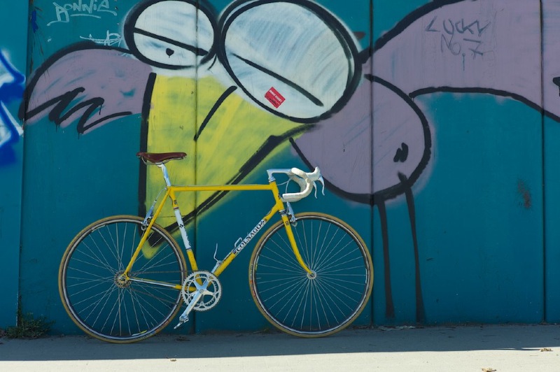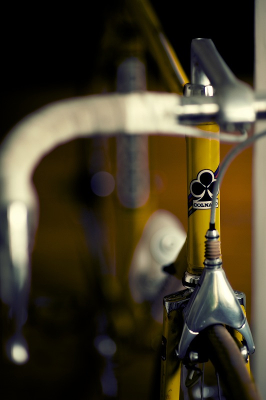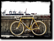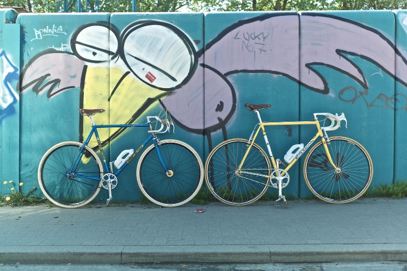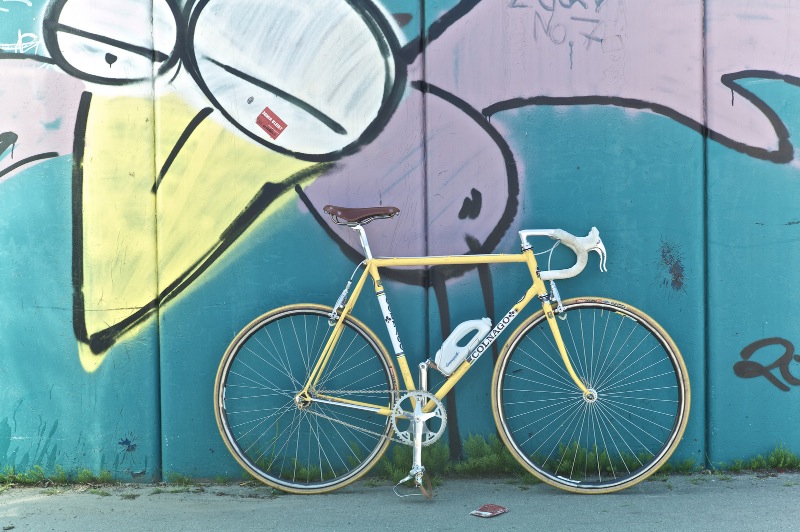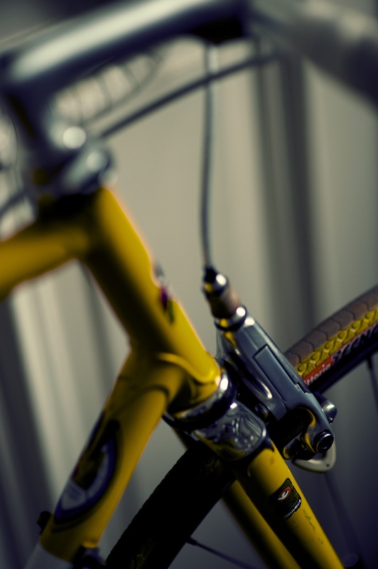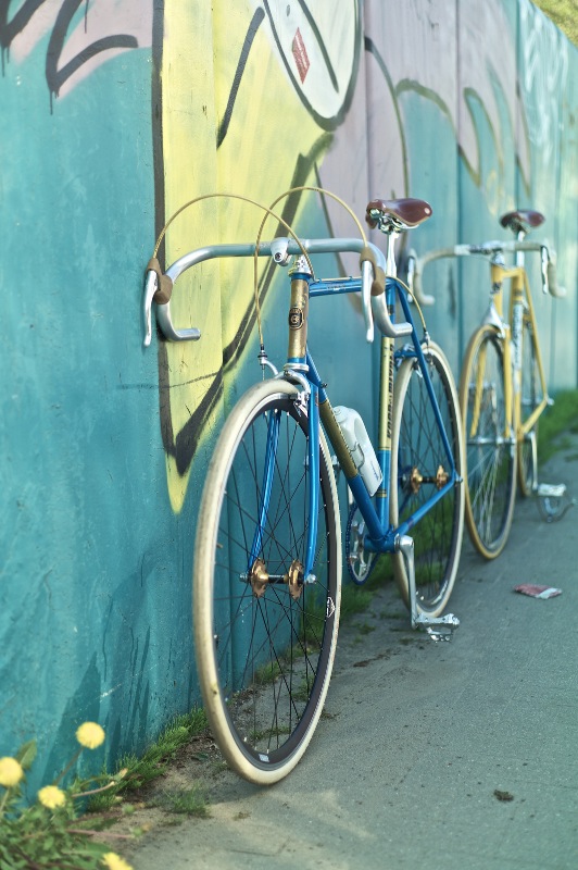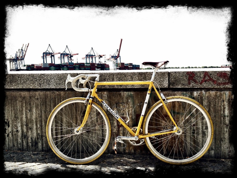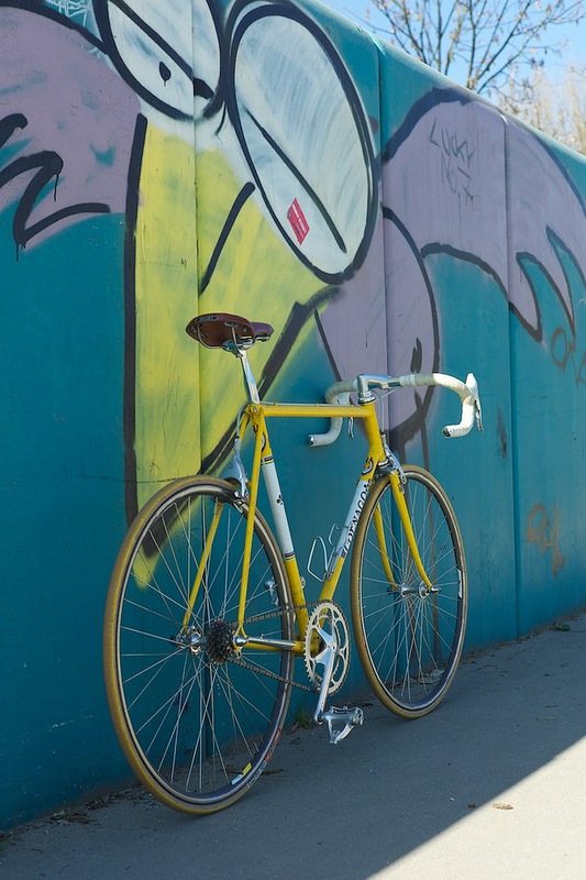 . Technical specification: Frame: Somec Columbus tubes 126mm Wheels: Rigida Rims with Miche XPRESS FlipFlop Hubs (Aixle aft 126 mm) Sprockets: Shimano freewheel 16 teeth and Miche Pista sprocket with 16 teeth Tires: Fixie Pops Yellow Cab Crankset: Campagnolo Croce d' Aune rebuilt to singlespeed with spacers and 47 teeth Pedals: Campagnolo Chorus Bottom bracket: Campagnolo Croce d' Aune Italian thread Brakes: Campagnolo Record C Delta Brake levers: Campagnolo Record C Stem: Modolo Classic Headset: Campagnolo C-Record 1" Bar: 3TTT Pista Saddle: Brooks Swift Titanium Seatpost: Kalloy Aero Classic Bottle&cage: Campagnolo Record 80's Aero | ||