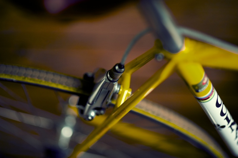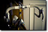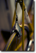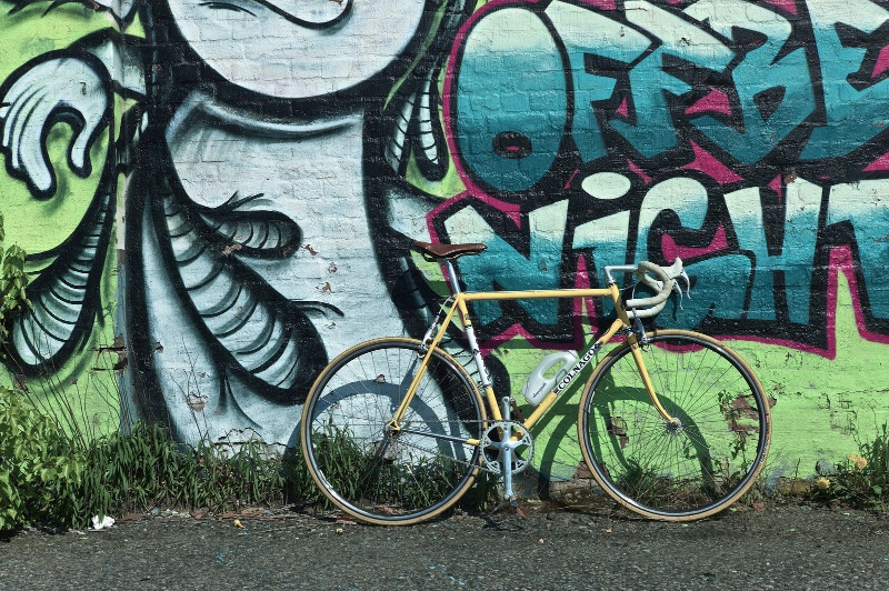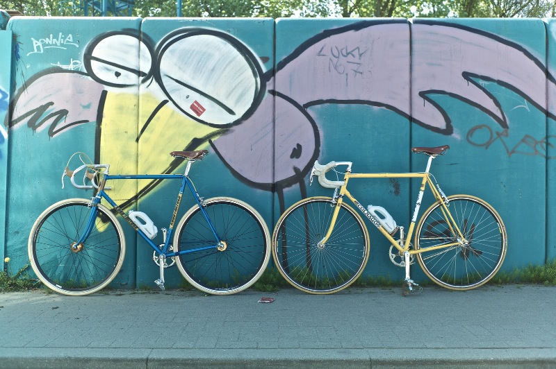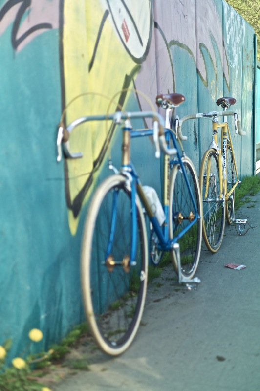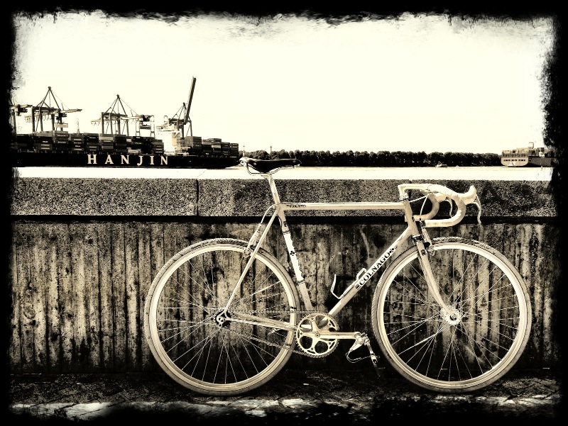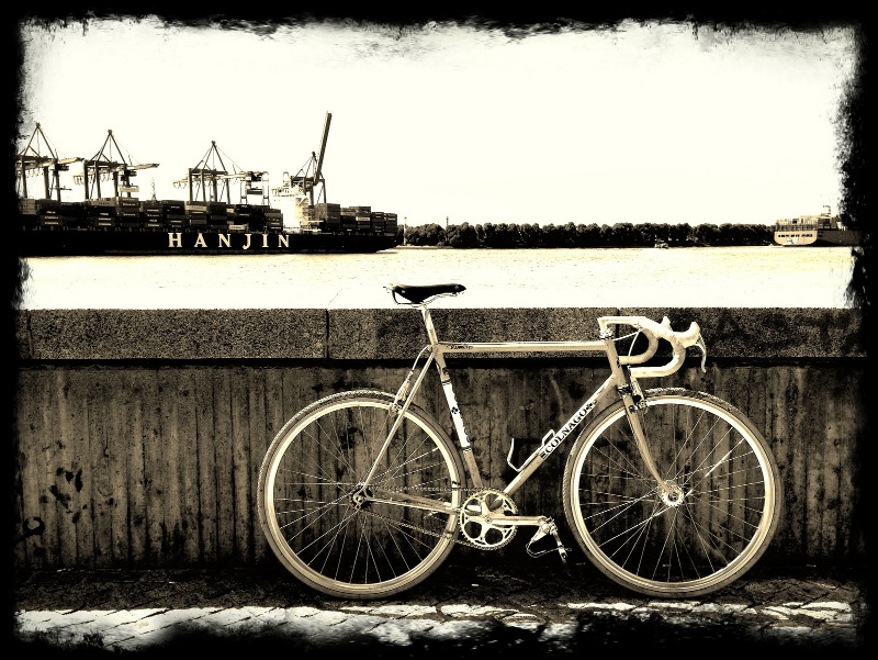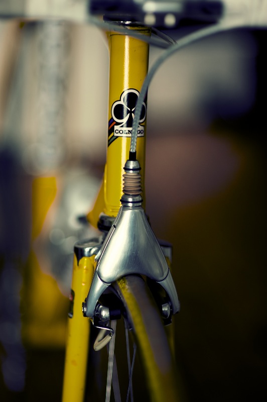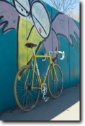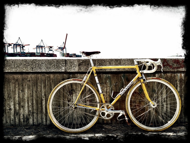 . Technical specification: Frame: Somec Columbus tubes 126mm Wheels: Rigida Rims with Miche XPRESS FlipFlop Hubs (Aixle aft 126 mm) Sprockets: Shimano freewheel 16 teeth and Miche Pista sprocket with 16 teeth Tires: Fixie Pops Yellow Cab Crankset: Campagnolo Croce d' Aune rebuilt to singlespeed with spacers and 47 teeth Pedals: Campagnolo Chorus Bottom bracket: Campagnolo Croce d' Aune Italian thread Brakes: Campagnolo Record C Delta Brake levers: Campagnolo Record C Stem: Modolo Classic Headset: Campagnolo C-Record 1" Bar: 3TTT Pista Saddle: Brooks Swift Titanium Seatpost: Kalloy Aero Classic Bottle&cage: Campagnolo Record 80's Aero | ||