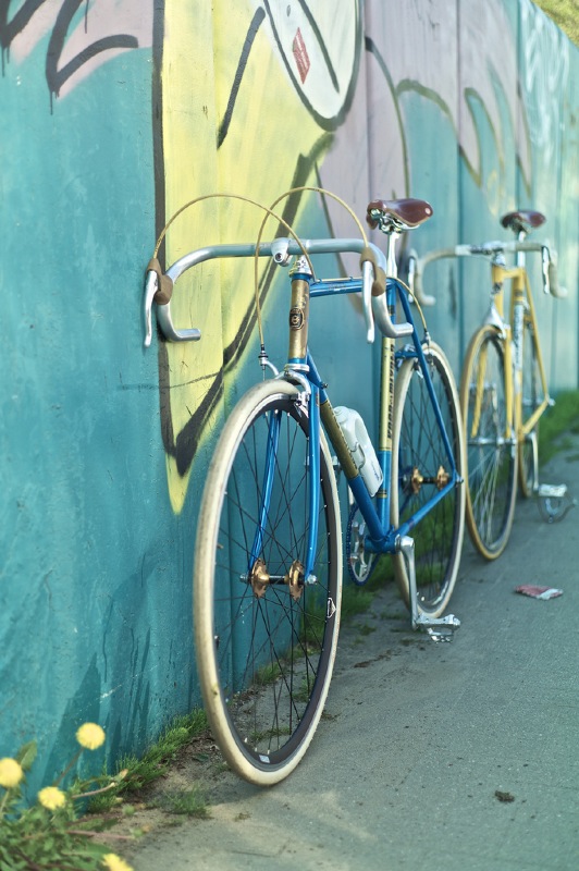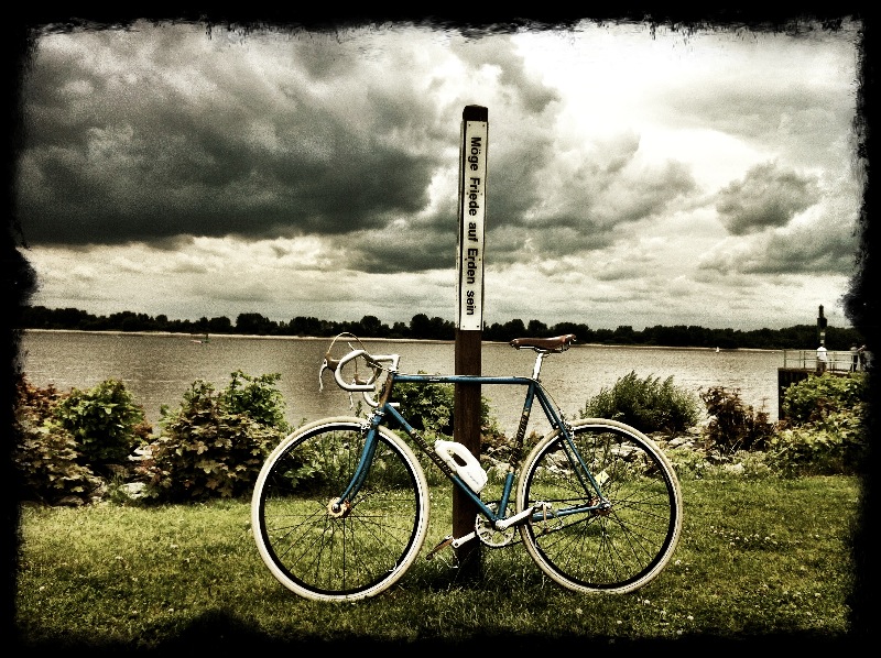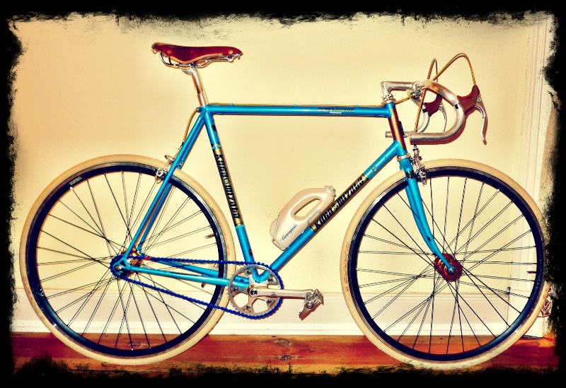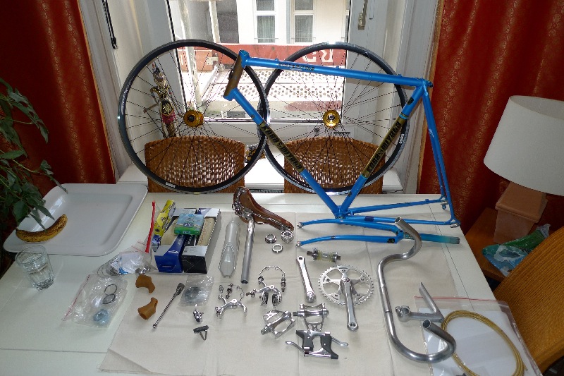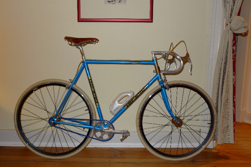 Henk Technical specification: Frame: KogaMyata Reynolds 531 Wheels: Rigida Rims with Miche XPRESS FlipFlop Hubs (Aixle aft 130 mm) Sprockets: Shimano freewheel 16 teeth Tires: Schwalbe Ultremo beige Crankset: Campagnolo Triomphe rebuilt to singlespeed with spacers and 52 teeth Pedals: Sachs Maillard Bottom bracket: Campagnolo Triomphe BSA thread Brakes: Campagnolo Triomphe 80's Brake levers: Campagnolo Triomphe Stem: 3TTT Headset: Shimano 600 1980th 1" Bar: 3TTT Classic Saddle: Brooks Swift brown Seatpost: Kalloy Aero Classic Bottle&cage: Campagnolo record Aero 80's | ||