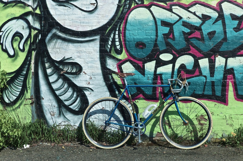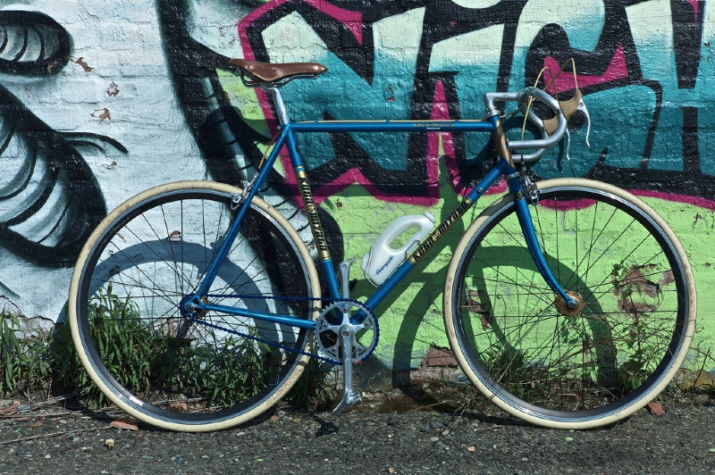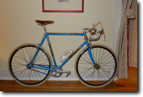 Henk This singlespeed is made of Reynolds 531 tubes by KogaMyata in the 1980's. The bike is equipped with a rare Campagnolo Triomphe group set. Henk was built for a friend; since then, Henk is stored in the living room | ||