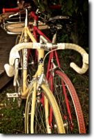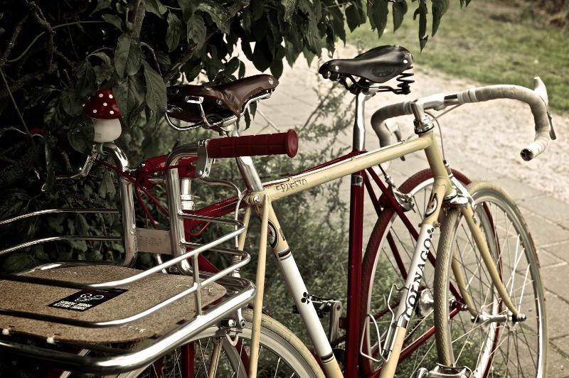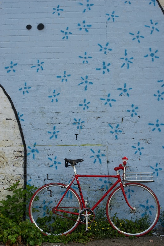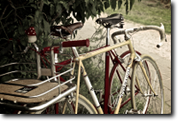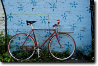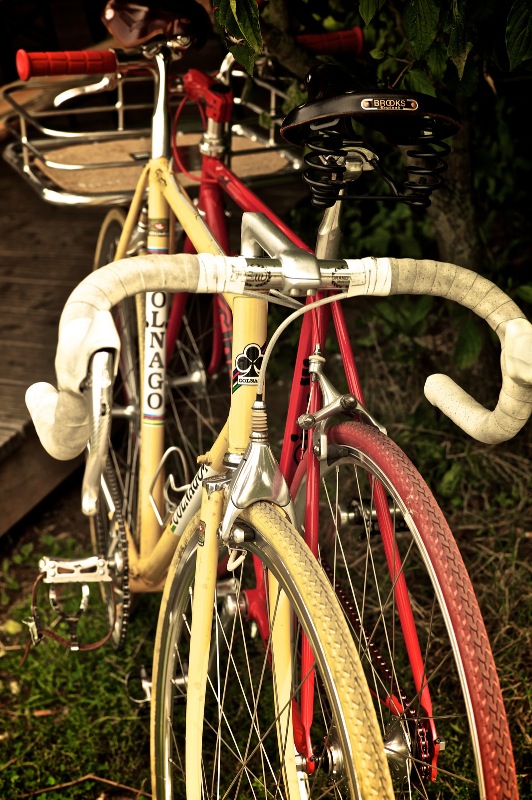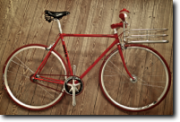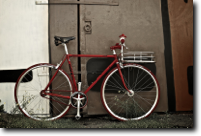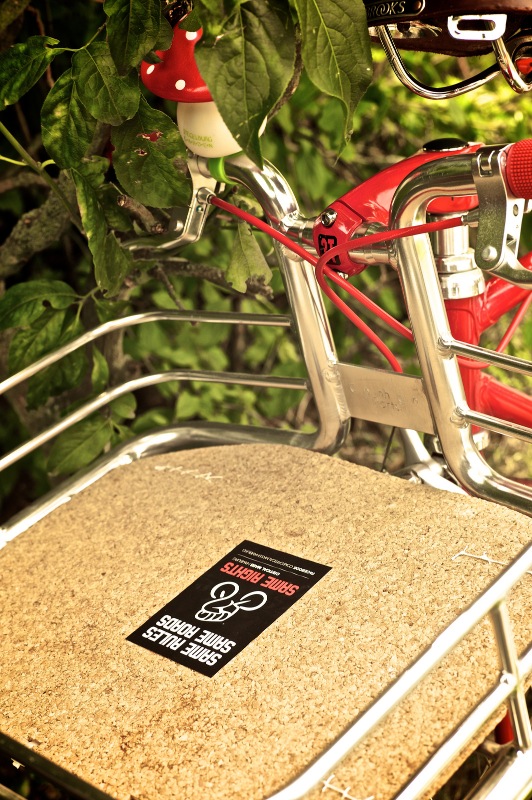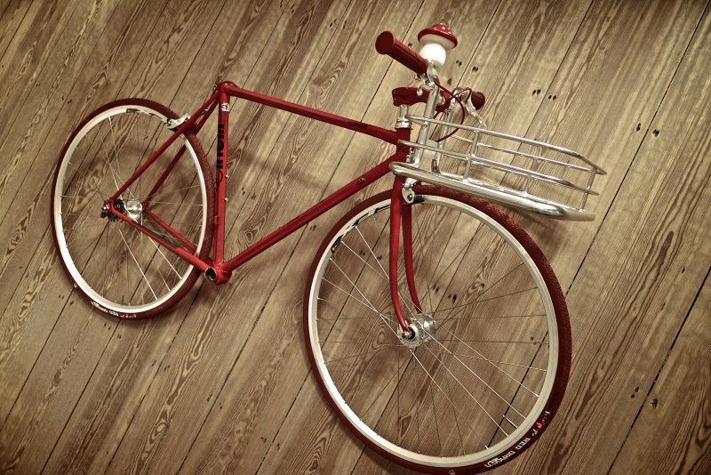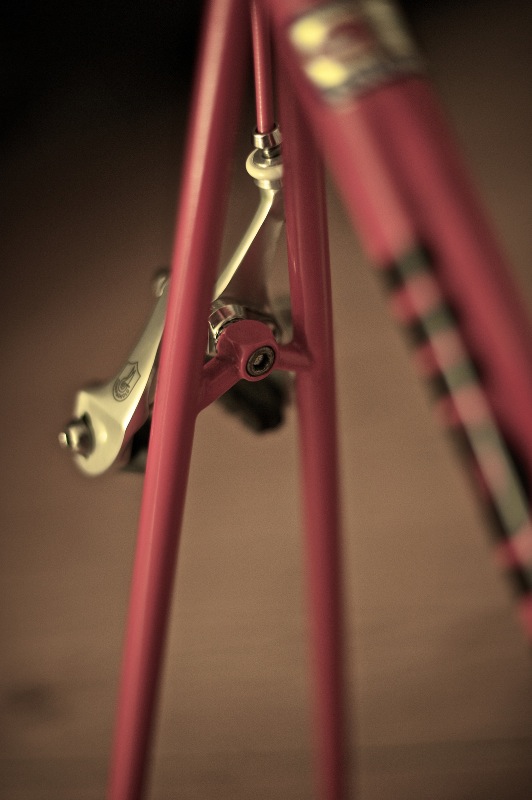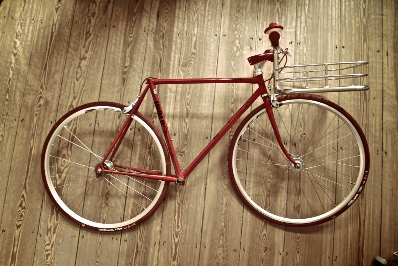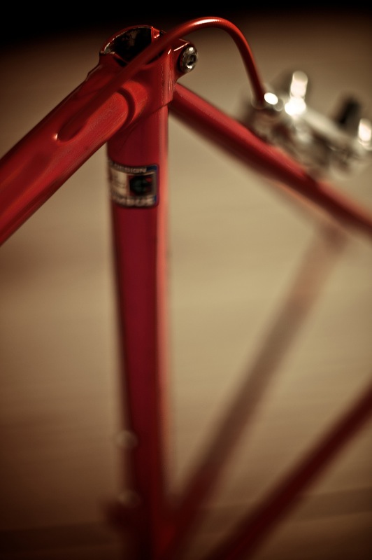 M.A.R.F.A. Technical specification: Frame: Cinelli Columbus Gilco Tubes Wheels: Rigida Rims with Miche XPRESS FlipFlop Hubs (Aixle aft 130 mm) Sprockets: Shimano freewheel 16 teeth and Miche Pista sprocket with 16 teeth Tires: Fixie Pops Red Crankset: Campagnolo Chorus rebuilt to singlespeed with spacers and 47 teeth Pedals: no name Bottom bracket: Campagnolo Chorus Italian thread Brakes: Campagnolo Athena 80's Brake levers: Cross levers Stem: 3TTT Mutant red Headset: Campagnolo C-Record 1" Bar: Kopenhagen Parts Saddle: Brooks Woman Classic Seatpost: Kalloy Aero Classic Bottle&cage: none | ||