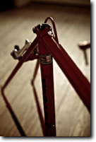 M.A.R.F.A. This singlespeed is made of Columbus Gilco tubes with the unique shape, the luggs are all made by Cinelli in the 1990's. The bike has internal cable guides and its frame is very light. | ||
